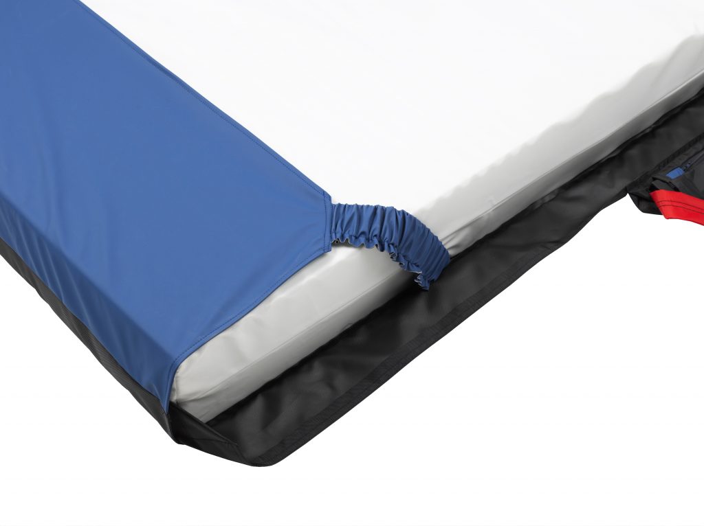 - Pelastuslakana asetetaan patjan alle ja pujotetaan patjaan kiinni päätyhuppujen avulla.
