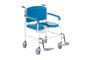 The XXL Wheeled Shower Chair is designed for easy access, independence, safety and on the caregiver terms. The inside width of the chair is 61 or 71 cm, but using a 5cm high PU foam seat and 7cm free space to the armrests allows the body mass to fall down, instead of fading out to the sides. The impossible “wide inside but small outside” is obtained. This allows the XXL-Rehab Shower Commode to pass through nearly all modern doorways.
