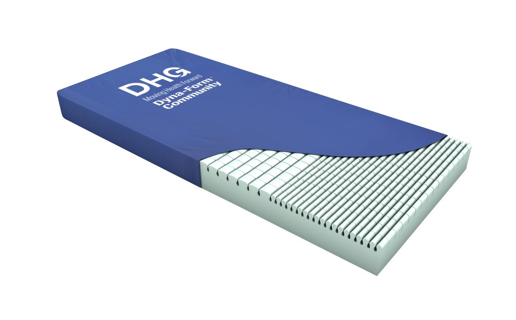 The Dyna-Form® Community mattress can be used with patients considered to be up to that of “High Risk” of pressure ulcer development. Using modern foam designs, castellated on one side to aid pressure ulcer management, whilst providing excellent patient comfort; this mattress can be used without a turning programme, aiding moving & handling procedures. The Dyna-Form® Community mattress can work comfortably with any electric profiling bed frame. Its durable design uses only the very best CME foam & fabrics to provide a modern mattress complete with infection control enhancing cover.