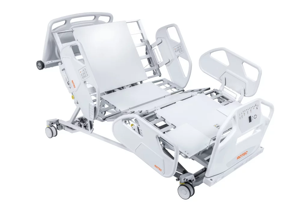 Easily extendable in width from 35″ to 47″ the bed caters to a wide range of patients and can be used as both a standard and bariatric bed. The adjustable frame also benefits from length extension at the touch of a button, extending the bed from 80-88″